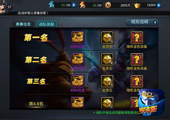 此外,在游戏内的元宝及道具奖励也让人垂涎,前32名战队均可获得海量元宝奖励,所有参战玩家亦可凭借个人积分兑换相应游戏道具奖励,亿万元宝等值奖励池,等你来徜徉!