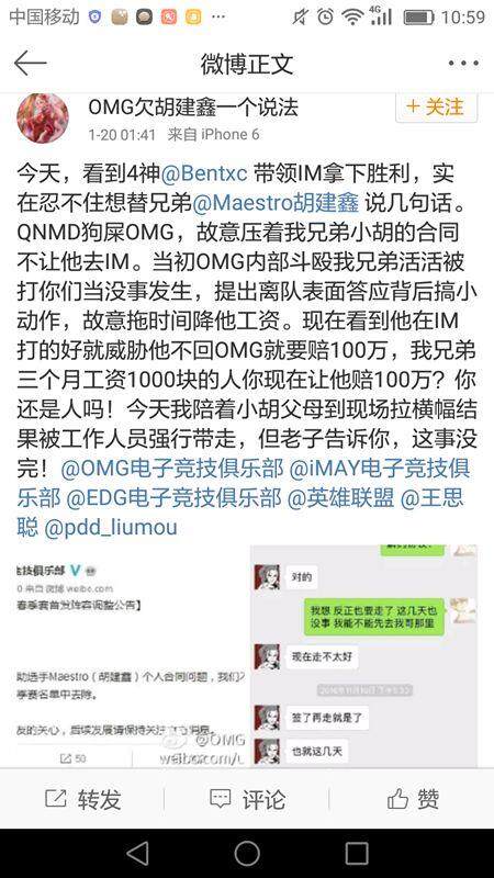 在前段时间,有消息称IM找到了一个不错的辅助(胡建鑫),配了套新阵容打的非常猛,给了其他俱乐部压力。然后有人发现辅助的合同有问题,就让他被迫离开了IM。