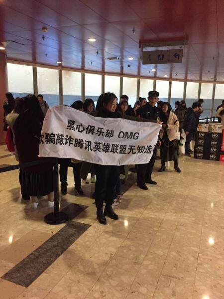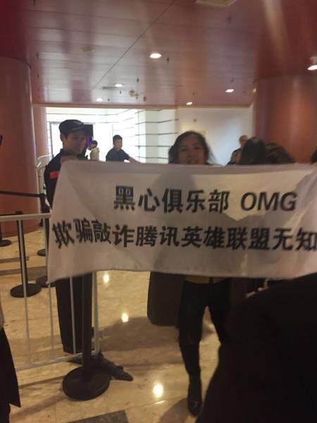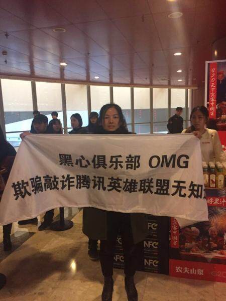 之后一位声称胡建鑫朋友的人发微博谴责OMG各种黑幕,压合同,打人等。并带着胡建鑫父母到现场拉横幅抗议: