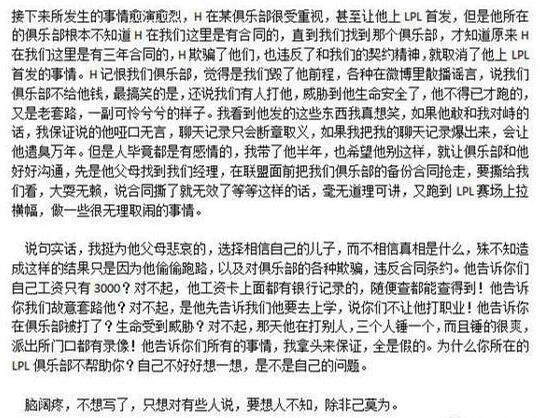 值得注意的是,如今这位爆料者已经删除微博并改名。另外,一位疑似胡建鑫最初所在战队的教练也站出来发微博反驳胡建鑫朋友的说法: