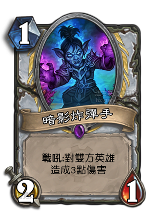 快攻牧一直是一个有缺失的牌组类型,曾经有人尝试过构筑但依然没有真正的登上过竞技舞台,如果快攻牧能成型,那么暗影炸弹手这样的卡片绝对是首选,牧师现存的牌库中没有合适的单卡可以替代她有可能发挥的作用,我想在开放模式里,有一天一定会有疯狂的快攻牧出现。
