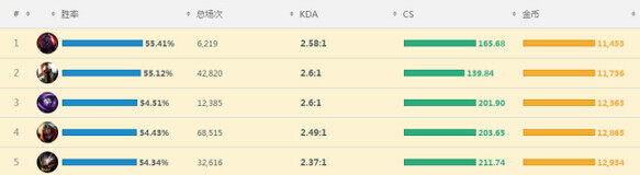 在这个大嘴之野望、暮色黑刃初登场的版本中未来不知道又会出现哪些有趣的Meta,就让我们先继续看下去吧!那么本周五的韩服胜率排行榜就先到这边告一段落!