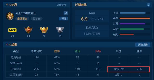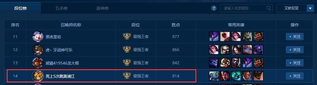 不过在看了一下小马的账号,只有王者766胜点了,看来最近排位进行的并不是很顺利啊!名字都改了,是要解一波毒了嘛!不过在国服玩家榜上现在还是814胜点还没更新过来呢,第14名。