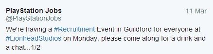 3月11日,索尼招聘官方推特发文表示,他们将专门为此次受到波及的狮头工作室员工举行招聘会。所有狮头工作室前员工“都受邀于下周一在吉尔福德聊天喝咖啡。”推文中还提到,这次活动将有索尼电子娱乐欧洲部的所有重要领导出席,如果有人想要单独约见,可以直接向他们的推特账号发私信。