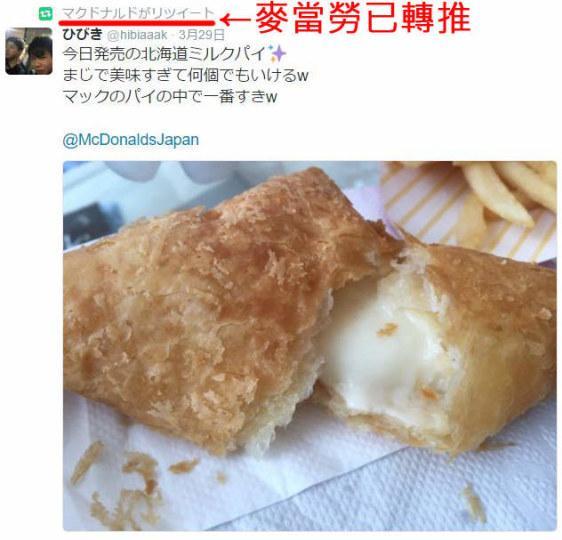 这件事的起因,源于日本麦当劳最近推出的时令菜单“北海道牛奶派(北海道ミルクパイ)”,官方推特不但频繁宣传,管理员还会四处搜寻发表和北海道牛奶派有关的“食记”的网友,并转推他们的感想,之后被转推的文章就会出现在麦当劳官方推特的首页,被超过一百万人的粉丝看个一清二楚!