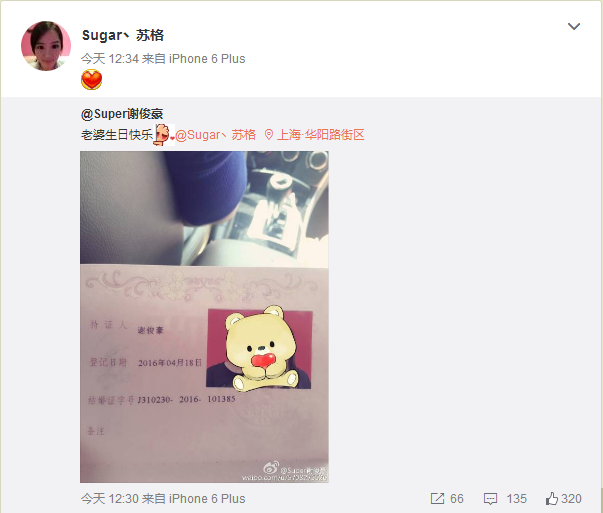 祝福Super和苏格幸福甜蜜,也希望包子在今后的比赛中能够有更好的发挥。