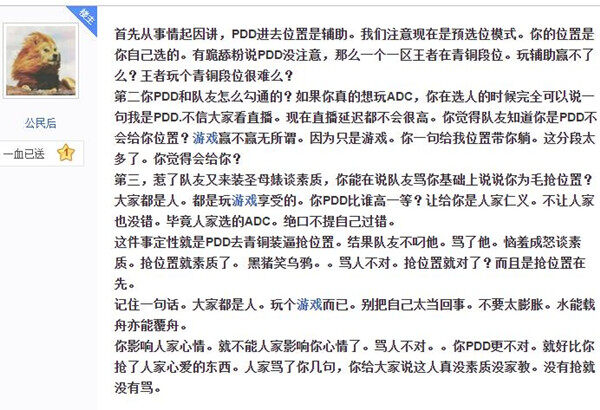 此时就有水友站出来为EZ说话,说PDD抢位置,PDD表示什么叫抢位置,我在青铜用滑板鞋辅助怎么了?