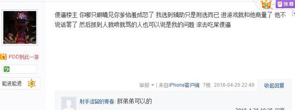 于是PDD就让房管封掉一波为EZ说话的水友,于是有粉丝在贴吧发帖,说这局两个人都有问题,让PDD别太膨胀了