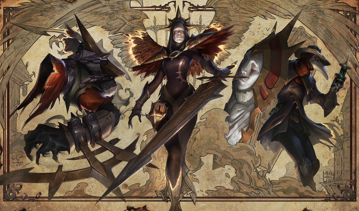 测试服最新上架的三款皮肤Iron Inquisitor Kayle(钢铁判官凯尔),Cursed Revenant Nocturne(极咒亡魂梦魇),Black Scourge Singed(黑色灾源幸吉德)原画发布。而正巧另一款单机大作黑魂3的发布,游戏中满满的暗黑颓废的中世纪风格与这份原画不谋而合。小伙伴们纷纷表示:Riot的画师终于开窍了!