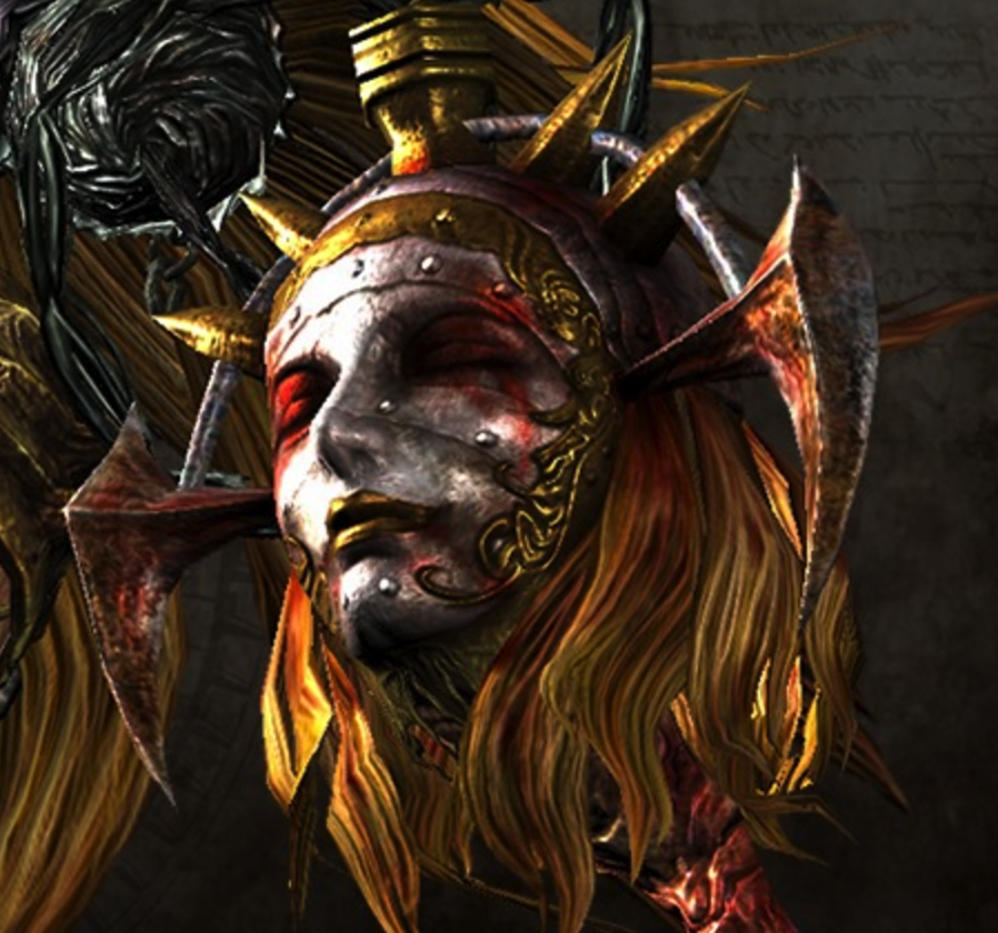 凯尔的面部造型,应该是凯尔被中世纪的一种非人道的拷问刑具 铁处女或铁娘子行刑后的效果,流着血泪,但也许凯尔只是戴上了具有行刑后面部的面具,