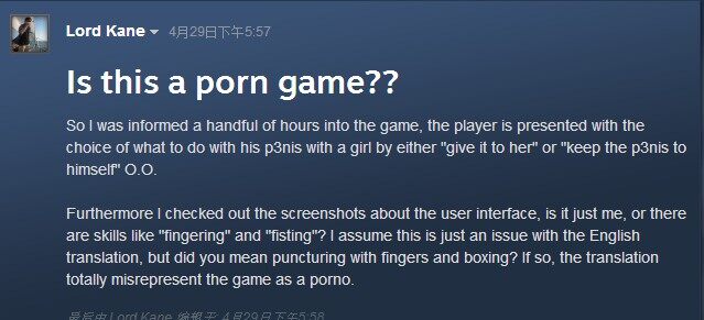 《侠客风云传》steam版已经于4月28日开卖,从游戏评价来看,还是好评居多,对于一款武侠游戏来说,登陆steam之后,自然也吸引了不少国外玩家,不过对于中国文化并不了解的老外难免面对一款纯武侠游戏的时候会闹出一些笑话,一些中国特色产物闹的乌龙十分爆笑。