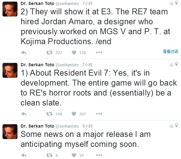 E3即将来临,如往年一样,展前各式各样的流言开始传播,今日,一则关于《生化危机7》的消息从Kantan Games的CEO Serkan Toto口中传来,鉴于其高层身份,这则传言还是有很高可信度的。