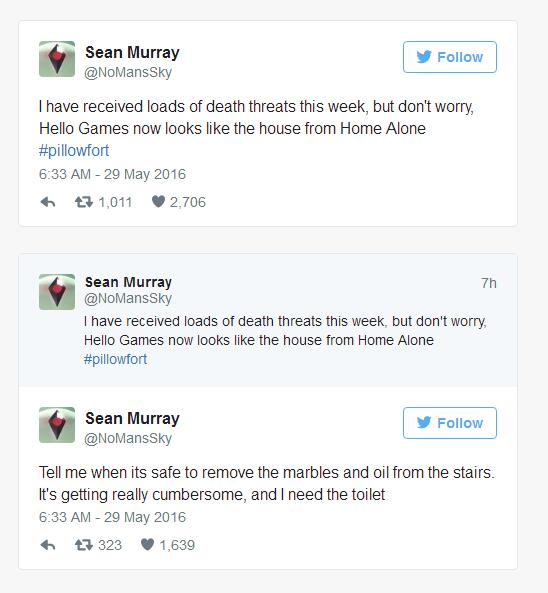 现在这款游戏的开发工作室负责人Sean Murray也在推特上透露信息,表示他也在本周收到了无数死亡威胁,并开玩笑说现在Hello Games工作室已经像是《小鬼当家》电影里的房子了。当然,相信他的心情也并不好。