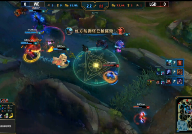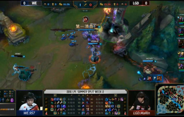 40分钟,LGD阵型脱节,牛头先手被秒。随后挖掘机也被控制带走。WE凭借水龙回复下路一波推下兵营,顺带杀掉了EZ。43分钟,LGD再次阵型脱节,挖掘机被秒。随后WE果断大龙,男枪拿下大龙后一波一换四,一路带走了LGD的基地。恭喜WE获得第一场的胜利!