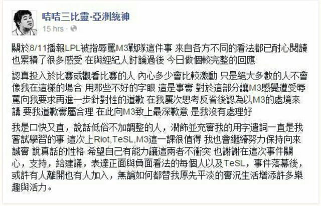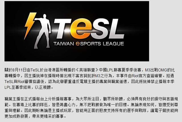 不仅如此,前段时间,统神在解说LPL比赛时对M3战队发表侮辱性评论,闹得沸沸扬扬,此事也遭到了拳头的关注。