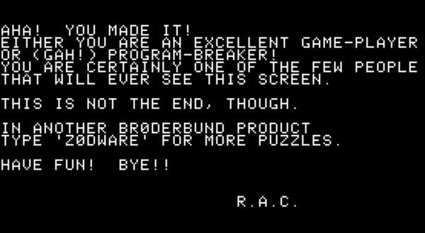 文章也将发现该彩蛋的功能归功于4am,据悉这名黑客为破解Apple II的DRM技术时花费多年时间,如今成功破解后终于可以将这款游戏上传至Internet Archive。文章指出,因为几乎所有的游戏副本都已经不复存在,很难再找到,而且这款游戏仅能在老式电脑上运行,因此4am的行动实际上更类似于“文物保护”,而非偷盗。