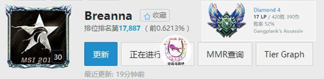 这个Breanna账号始于2013年的S3,当时的定级赛是白银,应该是归孩子父母所有。该账号在前几个赛季的成绩非常一般:S3白银,S4黄金,S5黄金。而就在今年S6突然一下子窜上了钻石!而且正在以飞快的速度打着晋级赛,目前是钻石4。