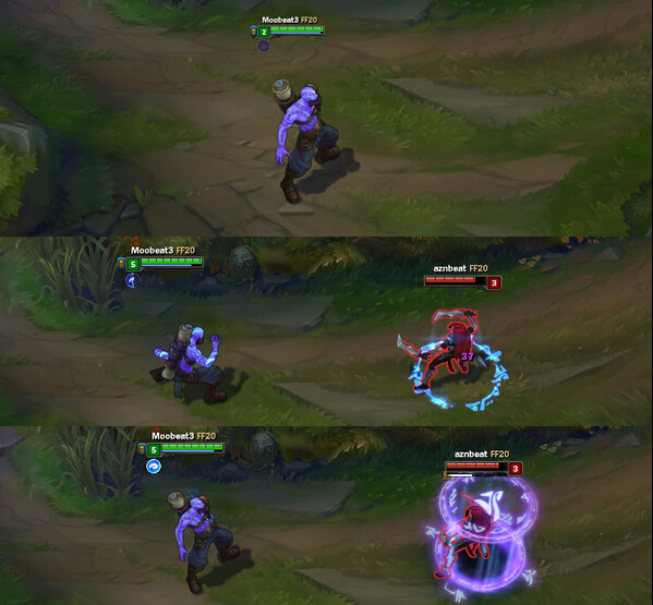 为了配合Q技能新的符文效果,现在瑞兹的血量条下方会出现一个充能显示器,当使用W、E技能时就会充能,充满后施放Q技能将会获得护盾。