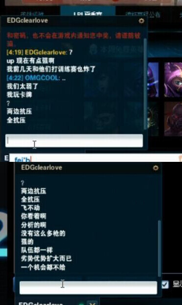 那么问题就来了,这些聊天记录的截图是真的吗?有网友有疑问,他们的国服ID应该不是这样的吧,比如以前cool的ID是夜神月什么的,随即有网友做出解答,这是比赛服。