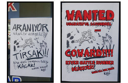 第一张海报的关键字:忘恩负义!、 草丛、胆小鬼、在河道间、逃跑、一直逃跑(还有一个视频,草丛里有奇怪的声音)
