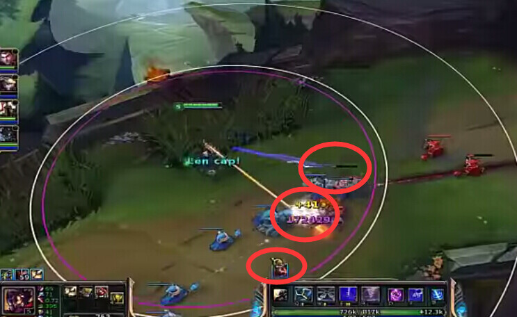 可见鼠标并没有点在小兵身上,E技能与A兵同时自动释放,轻轻松松自动补兵