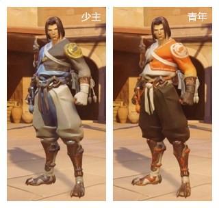 少主和青年同属一款皮肤,少主的由来无疑是因为半藏从小就被当做大名未来的继承人来培养的这一设定,年轻时候的半藏还是挺帅哒~青年这一皮肤和源氏的青年皮肤对应,上文中提到的尼泊尔照片俩兄弟穿的同一色系的衣服,情侣装啊有木有,可见当时二者的感情深厚。这也为半藏之后的无法接受自己杀死源氏的结果的一系列行为做了情感铺垫。