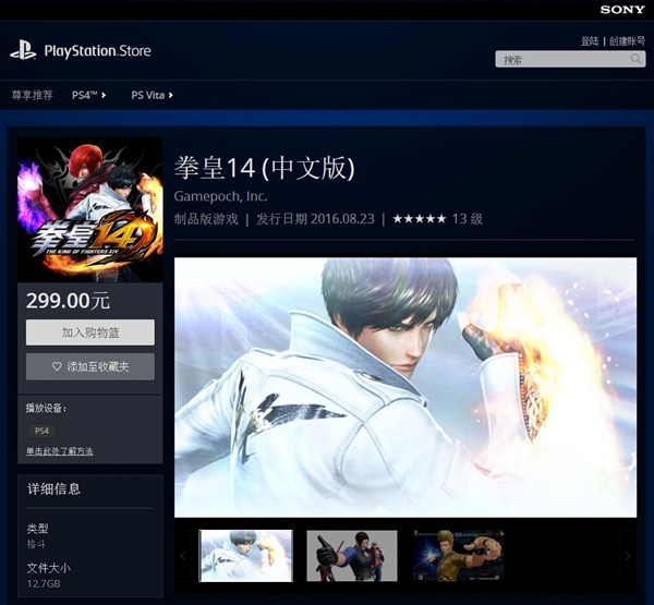 SNK格斗大作《拳皇14》目前已经在国内PlayStation商城中上架,数字版售价299元。另外在PlayStation天猫旗舰店和京东店中还有实体光盘版出售,价格同为299元。