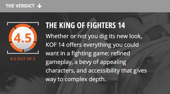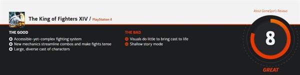 评测编辑认为游戏的故事有些平淡,并且画面也很让人失望,但是对于拳皇玩家以及格斗游戏玩家来讲,《拳皇14》都提供了很好的游戏体验。