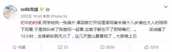 虎牙TV女主播陆雪琪最为人瞩目的就是“36E”啦,我相信也有不少粉丝是冲着看球去的...然而陆雪琪本人表示对此“很困扰”,还在微博自曝自己“大”的原因竟然是看“小电影”...