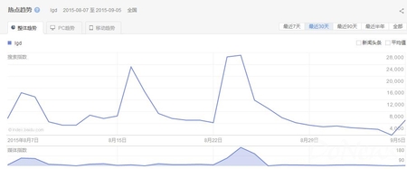 根据百度指数,在LPLS5夏季赛期间,LGD的百度指数一直在持续增长,在2015年8月23日决赛当天就接近28000点,决赛结束后一天达到峰值。