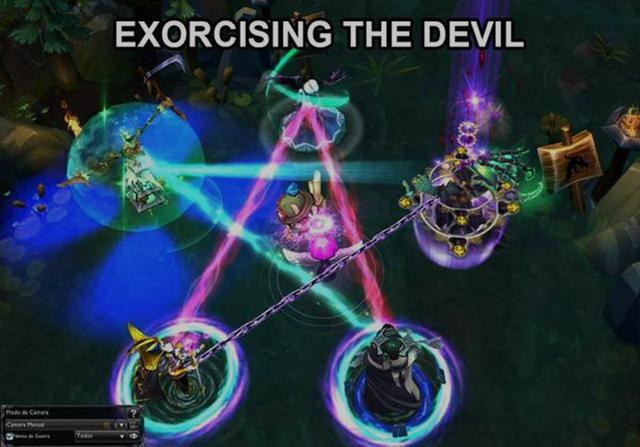 这位美服玩家说见过最厉害的应该就是那张封魔提莫的图片,就是曾经在网上流传的5星阵法,中间有个提莫的图片,如下图所示: