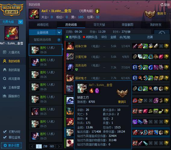 由于该名玩家并没有透露自己的封号系统上的截图,因此还不能确定消息到底是不是属实。而我们也第一时间找到了他在昨天试用锐雯的最后一场人机比赛资料。