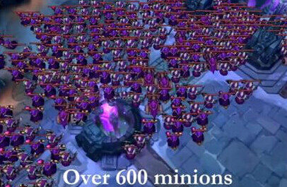 总耗时74分钟,一边攒兵一边数,差不多累计了600个小兵。但是相信大家也明白,大乱斗这张地图比较狭窄,能够真正打到防御塔建筑物的小兵最多100左右。