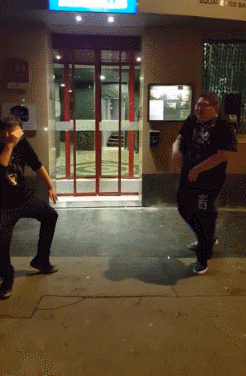 看着架势,街舞没少看啊,一位是金蛇郎君,另一位是秃头白龙马。你们半夜站在大门口飙舞真的没问题吗?