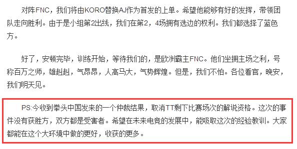 TT泄密被取消解说资格