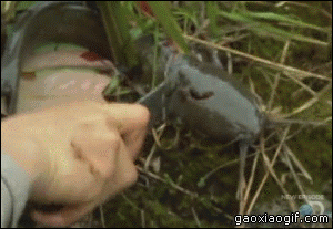 吃鲶鱼,貌似这只是贝爷在沼泽地里用手钓出来的!