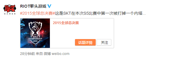 若风在解说之后也发了微博表示:看第一场觉得OG还蛮有戏的,但最终结果依旧还是3:0,这次还有谁能阻挡SKT夺冠?大多人都看好SKT,难道剧本又要像去年S4一样,最终的决赛冠军又是韩国队伍?想想就有点可怕!