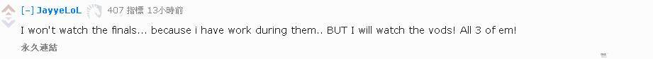 JayyeLoL:遗憾看不了决赛了....因为要上班...但我会看视频!三场不落!(谁说一定是三场?小编嗅到了阴谋的气息,KOO就这么容易缴械?)