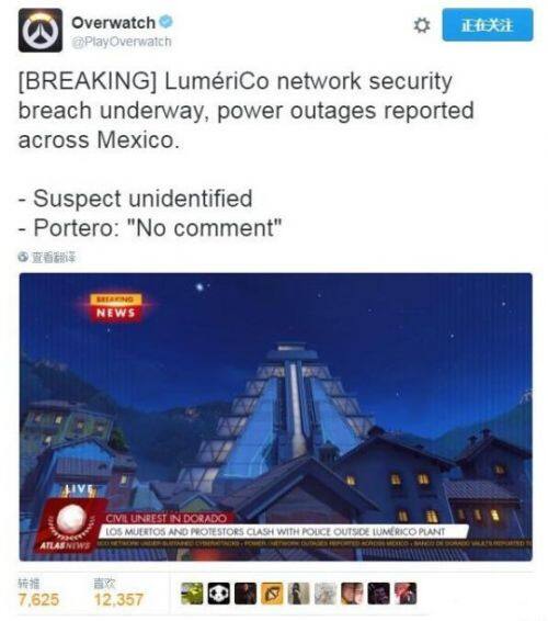 离2016暴雪嘉年华越来越近了,《守望先锋》官方也放出了越来越多的关于新英雄Sombra相关新闻。今日,《守望先锋》官方公布了一条爆炸性新闻:LumériCo的网络遭到黑客攻击,造成了墨西哥大规模停电。目前嫌疑人还未确定,LumériCo的负责人Portero表示:“此事无可奉告。”