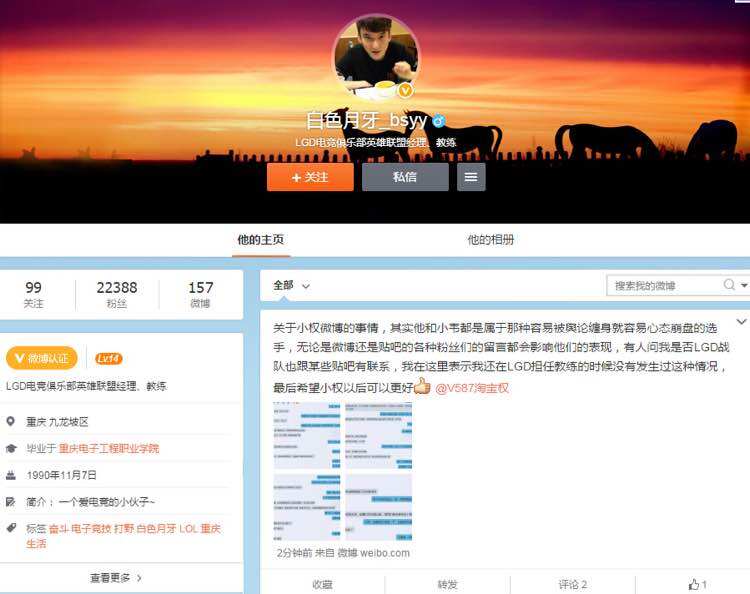 S5结束之后,LGD的队员们就因为糟糕的表现为国内LOL玩家所诟病,尤其是在某贴吧,每天都不断有关于LGD队员的负面新闻跟段子出现,身为LGD经理兼教练的白色月牙想通过吧务来消除一些负面影响,却不想被告知要给好处费,这波节奏开始之后,白色月牙本人也是马上删除了微博。