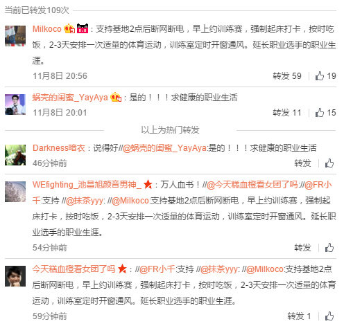 网友们也对白色月牙表示支持,希望建立积极健康的训练机制,保护选手的身体,延长选手的职业生命。