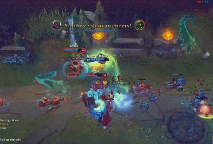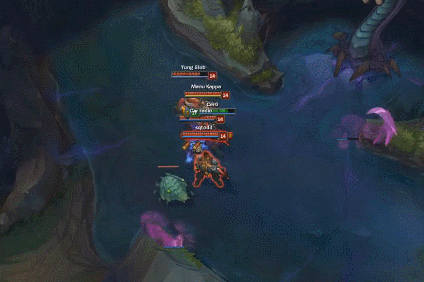 不解决掉这个新英雄,你们的队友将会被无数触须来回鞭挞,而且伤害非常高,又是一波集体被AOE拍死的惨状,要么分散打团,要么就杀掉触须和俄洛伊,否则她的持续输出作用不比炼金差。