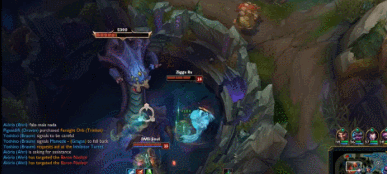 所以说像金克丝,EZ,寒冰,泽拉斯这样拥有超远距离弹道技能的英雄,就不能给抢龙的机会...哪怕组成人肉盾墙!