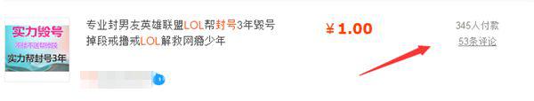 近日,有网友在某宝发现了一些关于LOL的奇葩服务,而且销量不错,如下图:
