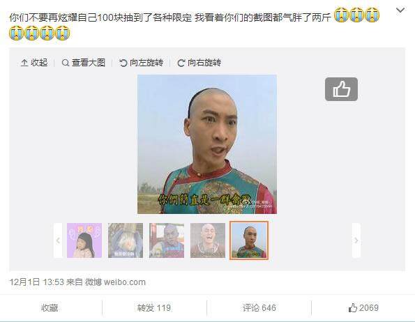 Uzi果然是天命狗,不仅仅在全明星的Solo大赛上第一轮轮空,现在抽奖一发就中了大嘴的冰雪节限定,还有波比的冰雪节限定,这NM!敢说官方没对Uzi的账号动手脚?