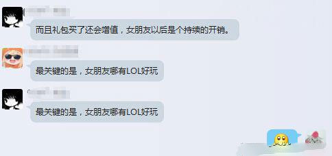 沐轩依晨Cc丶:2K可以用来干嘛?半个月工资。女朋友是长久投资,收获是有几率的。前前后后攻略下来要5W左右而且有可能是帮别人养的。LOL两千直接神装有木有!而且不用担心它会背叛你!!!