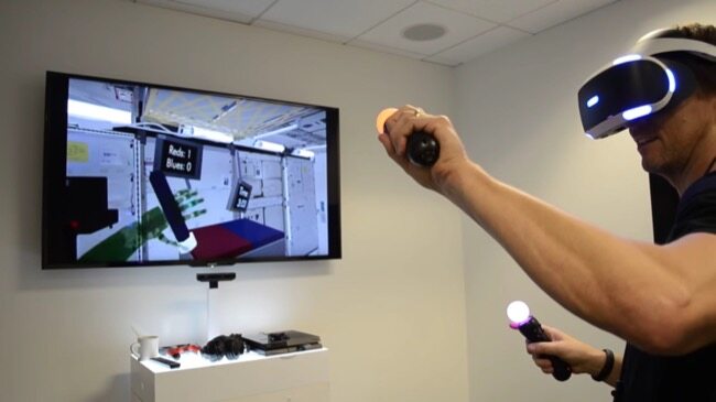 VR虚拟实境除了用来玩游戏、军事训练、教育、科学研究,现在连太空领域都有戏。NASA 美国太空总署,近期尝试导入虚拟实境头戴显示器 PlayStation VR 作为人形机器人《Robonaut 2》的训练设备。