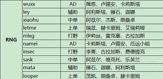 2016赛季LPL春季赛RNG战队名单